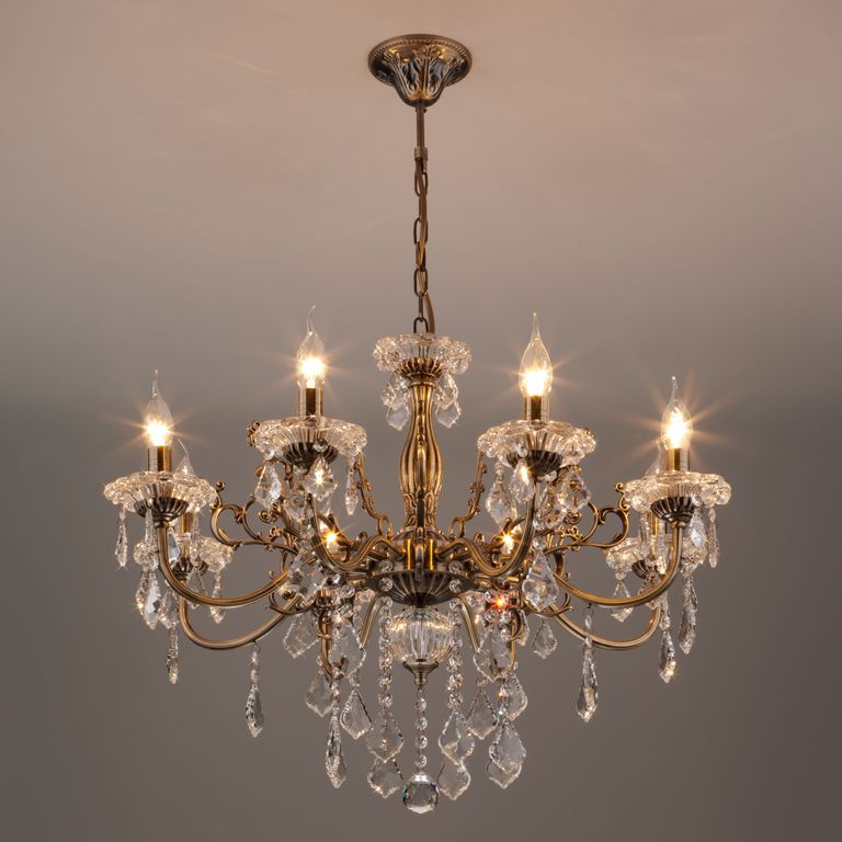 Люстра с хрусталем 3281/8 античная бронза/прозрачный хрусталь Strotskis Eurosvet