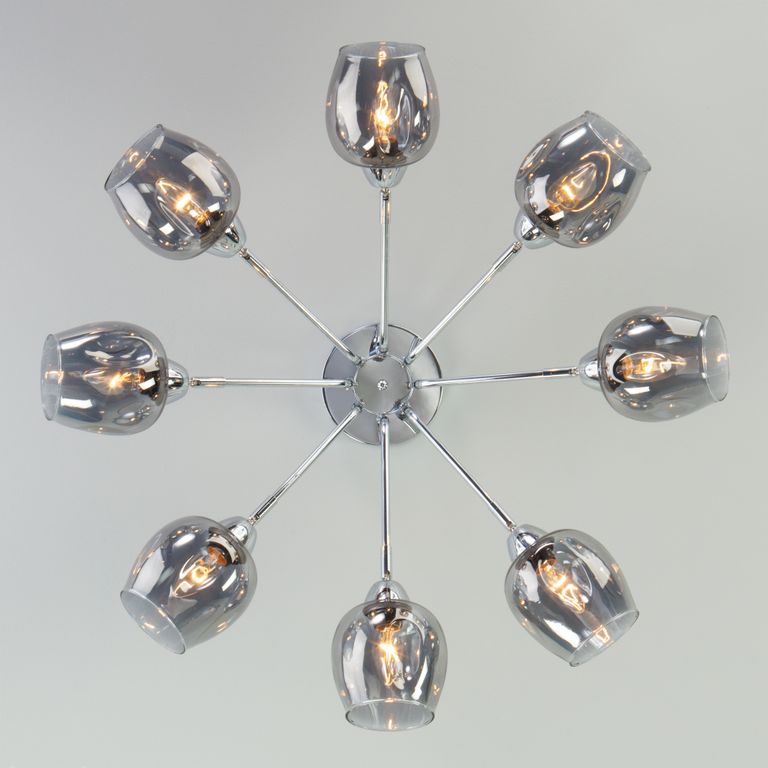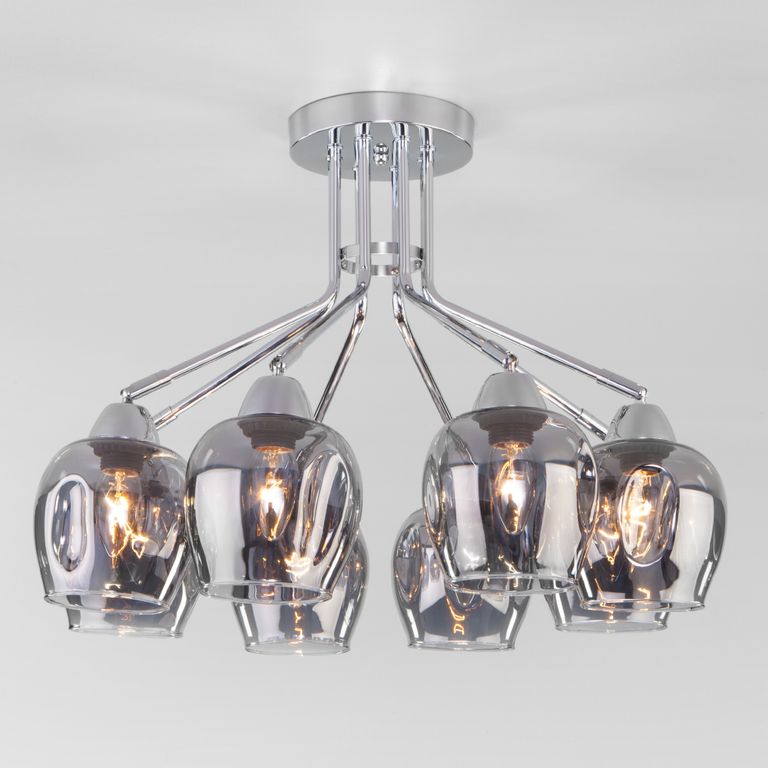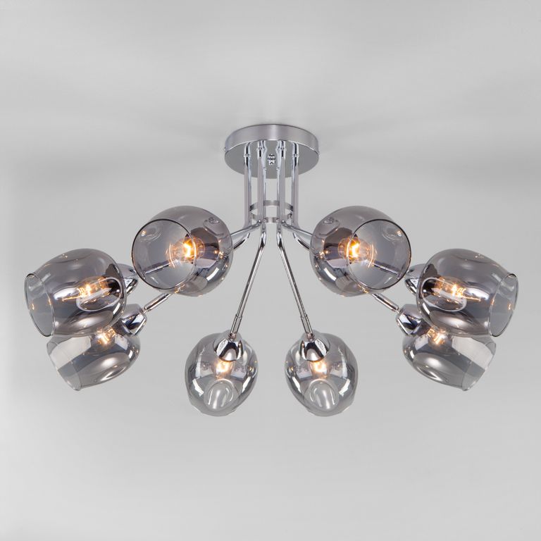 Потолочная люстра с тонированными стеклянными плафонами торговой марки Eurosvet™. Светильник на 8 плафонов с цоколем Е27 позволит осветить помещение площадью в 30 м.кв.