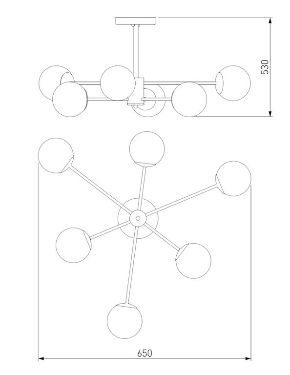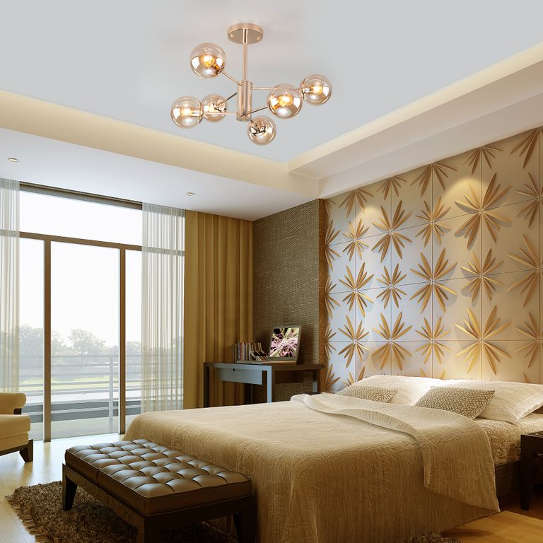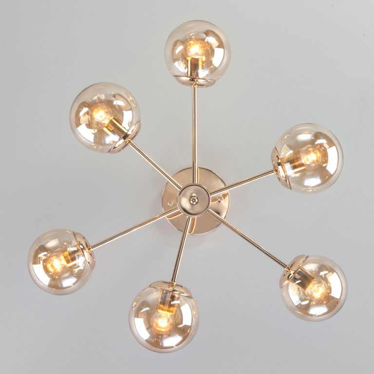 Стильная потолочная люстра со стеклянными плафонами торговой марки Eurosvet™. Светильник на 6 плафонов закрытого типа с цоколем Е27 позволит осветить помещение площадью в 24 м.кв.