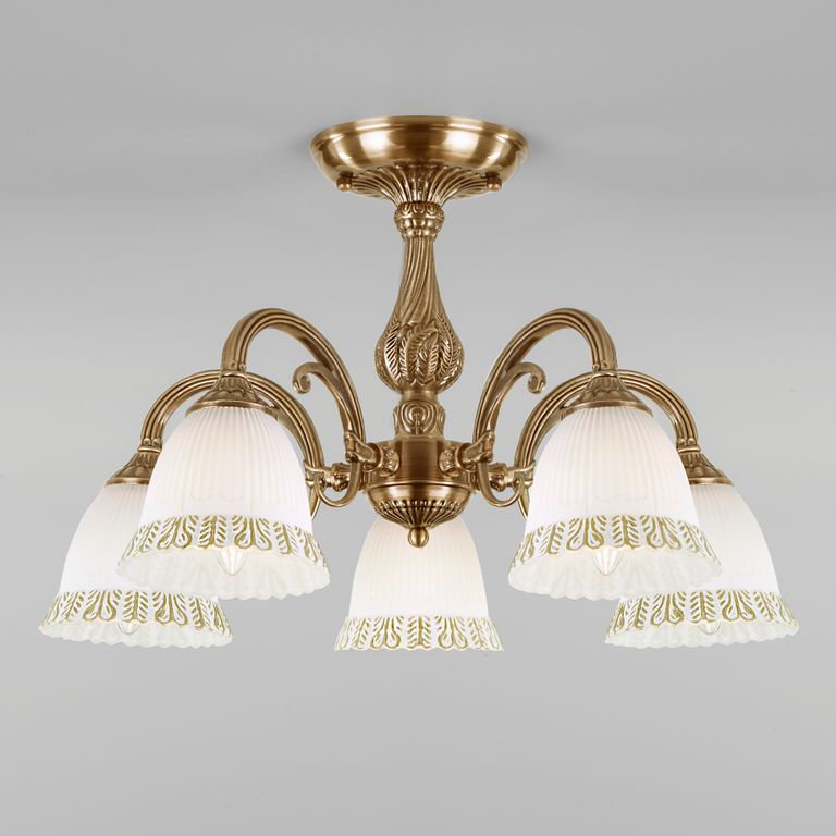 60107/5 античая бронза - классическая люстра Campina со стеклянными плафонами EuroSvet