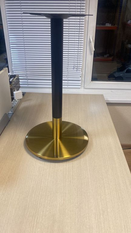 | * сверху полностью стальное * уяжелитель из композита * стойка диаметром 60 мм. * регулировочные ножки в основании * покрытие нитрид титана (золото) * упаковано по 2 шт. * высота 72 см. |