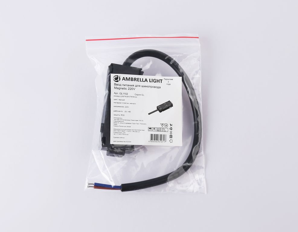 Ввод питания для шинопровода Magnetic 220V GL 1102 BK черный IP20 200*28.5*18