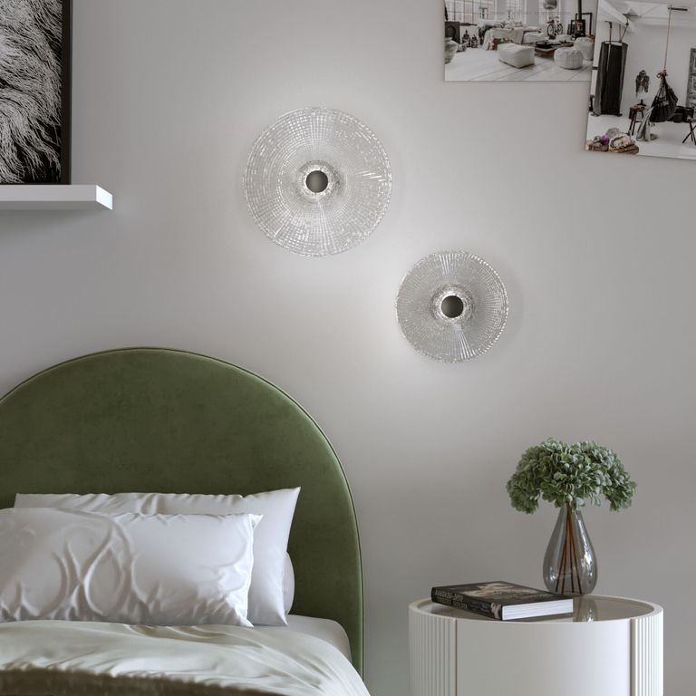 Фактурная «баска», обнимающая молочные плафоны, вызывает ассоциации с плиссированными юбками. Фешенебельная композиция моделей создает эффект визуальной легкости в интерьере, мягко рассеивая свет.