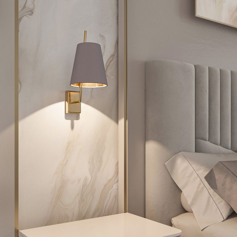 Настенный светильник создаст качественное дополнительное освещение и станет ярким дополнением к основному источнику света. Благодаря тканевому абажуру бра создает мягкое рассеянное свечение, подходящее для комфортного чтения книг в вечернее время.