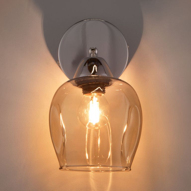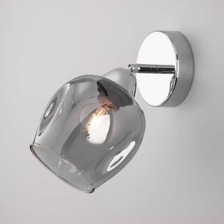 Бра со стеклянным плафоном 30164/1 хром создаст качественное дополнительное освещение и станет эффектным дополнением к основному источнику света. Благодаря дымчатому стеклянному плафону бра создает мягкое равномерное свечение, подходящее для комфортного чтения книг в вечернее время. В качестве источника света используются сменные лампы типа "Свеча" или "Шар" с цоколем Е27.