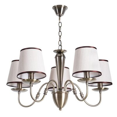 Люстра Artelamp A3227LM-5AB серии Fiona. Подчеркнет стиль помещения. Высота 57 cm. Плафон текстильный бежевый, а материал/цвет арматуры металл/бронза. Использует 5 ламп с цоколем E14. Идеально подходит для спальни.