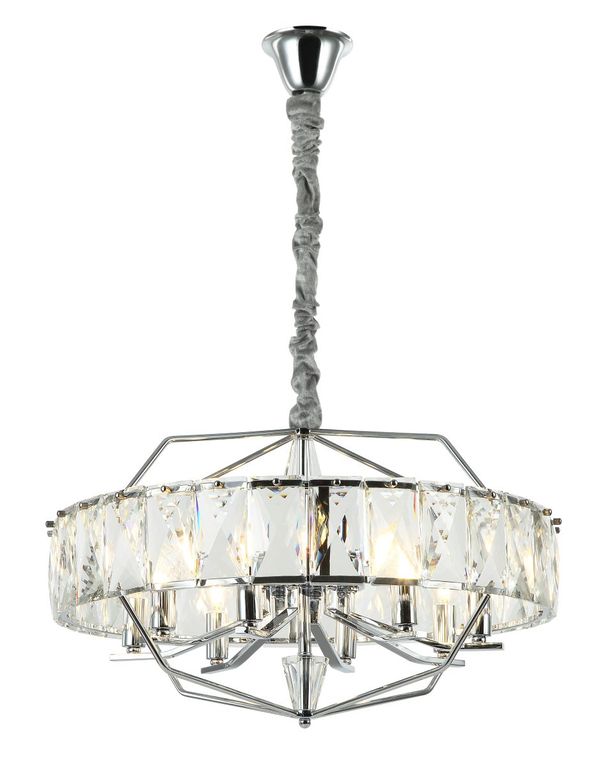 Подвесная люстра из серии Avenue имеет металлическую арматуру, гальванизированную в цвет хрома и декорирована прозрачным хрусталем высшей категории.