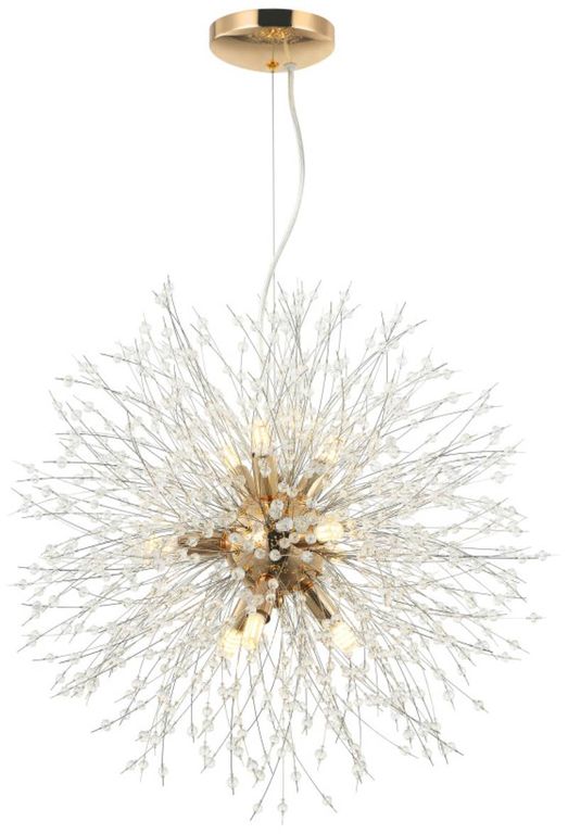Люстра подвесная 2123/03/09P Stilfort серии Salut выполнена в стиле модерн. Арматура изготовлена из металла в цвете "золото". Данная модель отличается своим креативным дизайном в виде имитации салюта. Декоративные элементы выполнены в цвете "хром".