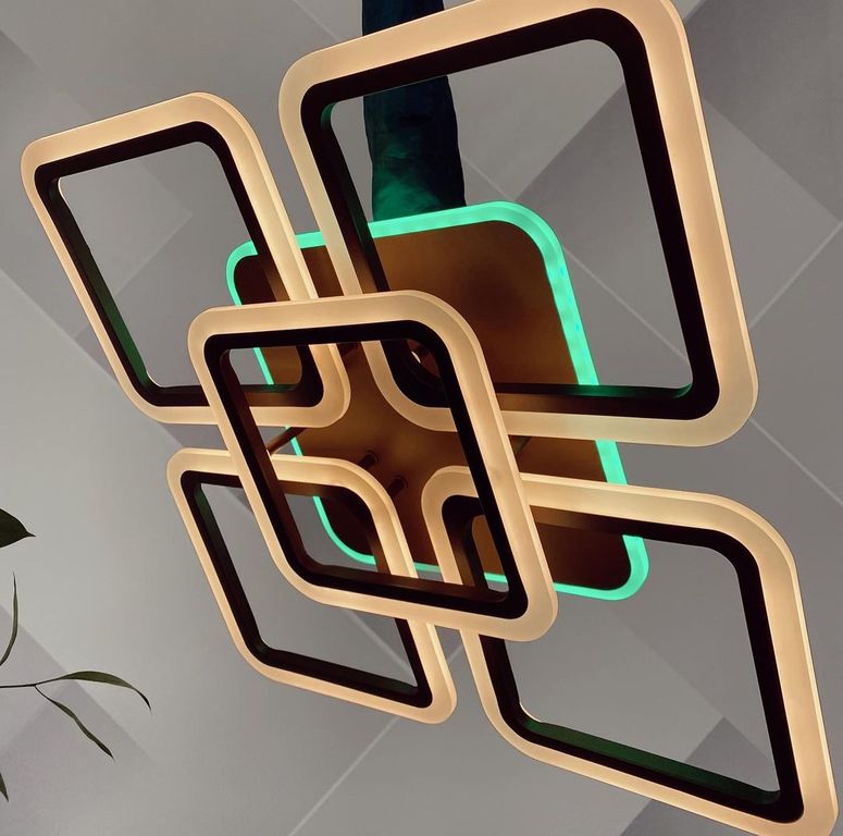 Потолочная светодиодная люстра с дополнительной боковой разноцветной подсветкой Profit Light 8075/4+1 COF. Цвет основания: кофе. Идеально подходит для гостиной, спальни, кухни, кабинета площадью от 15 до 25 кв.м. В комплект к люстре входит ПДУ (пульт д
