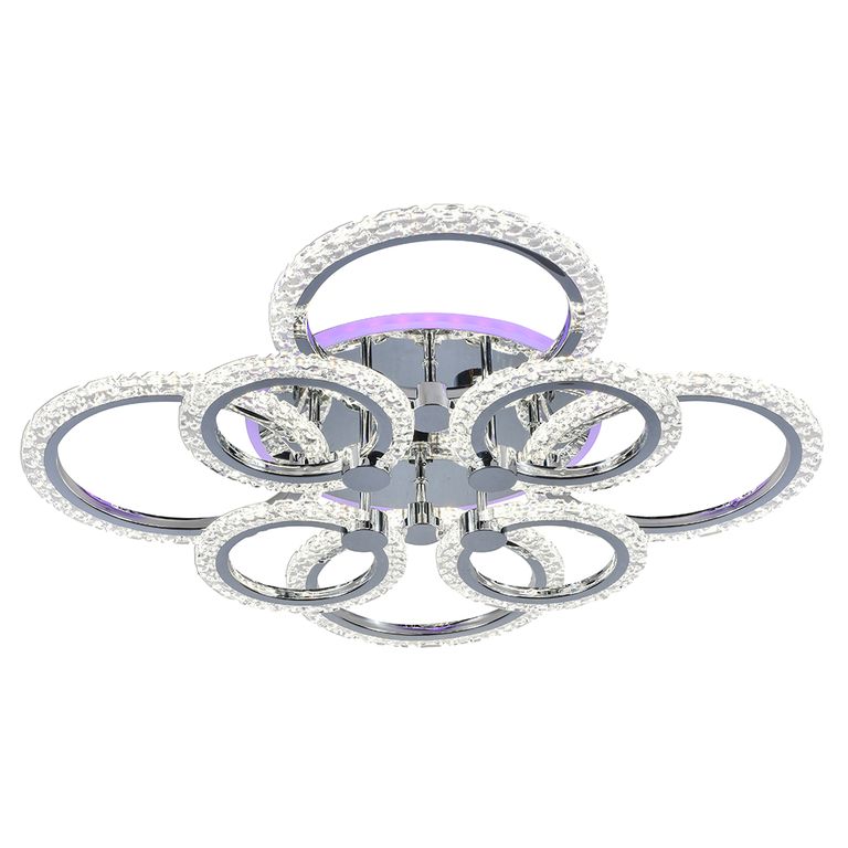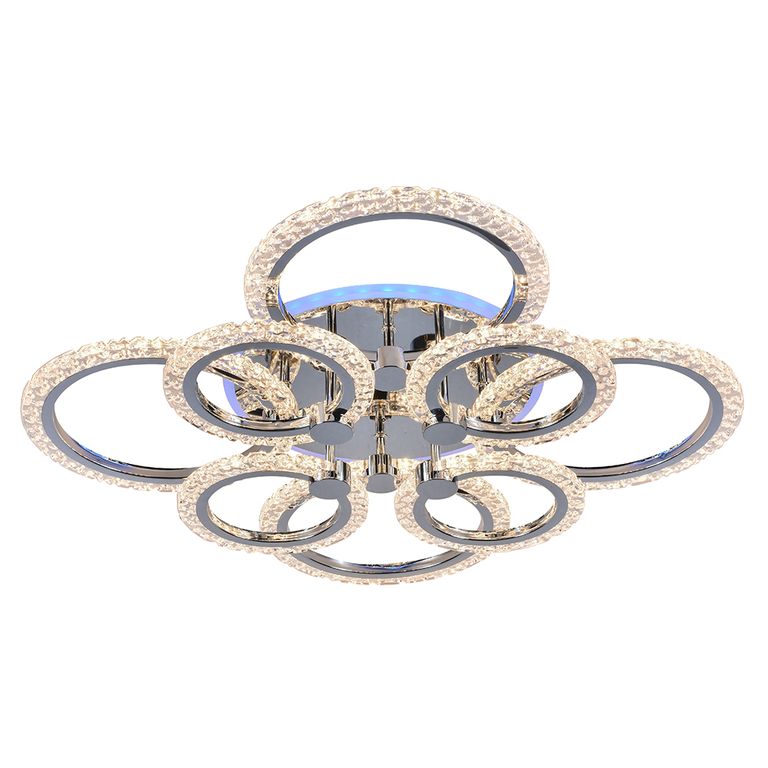 Люстра потолочная светодиодная Profit Light 8027/4+4 CHR 144W+11W RGB с дополнительной боковой разноцветной подсветкой. Цвет основания хром. Идеально подходит для гостиной, спальни, кухни, кабинета площадью от 15 до 25 кв.м. В комплект к люстре входит